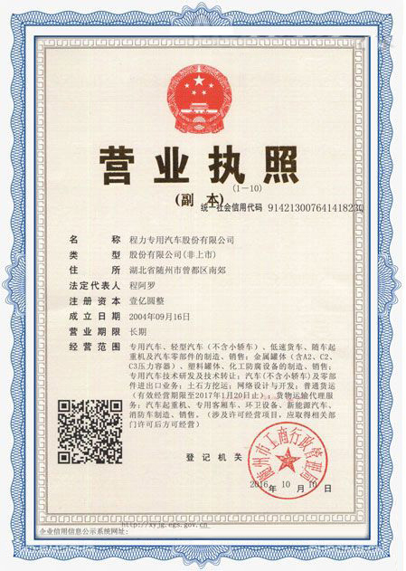 程力專用汽車股份有限公司各類專用汽車的專業(yè)廠家,大型專用汽車廠。國內園林綠化、石油化工、市政環(huán)衛(wèi)、壓力容器專用汽車商。注冊“程力威”牌,產品代碼:“CLW”。東風、解放、福田、重汽、陜汽、北奔等公司的重要合作伙伴,主要從事各類專用汽車的業(yè)務,同時也銷售各大型廠家的整車及配件。公司擁有自行出口權,其主導品種有灑水車系列、吸污(吸糞)車系列、垃圾車系列、掃地車系列、油罐加(運)油車系列、高空作業(yè)車系列、清障車系列、隨車吊系列、自卸車系列、教練車系列、半掛車系列、化工車系列、消防車系列、廂式(冷藏車)系列、牽引車系列、粉粒物料車系列、攪拌車系列、壓力容器系列、專用車配件等十八大系列300多個品種車型。同時批發(fā)東風、解放、楚風各種二類底盤。